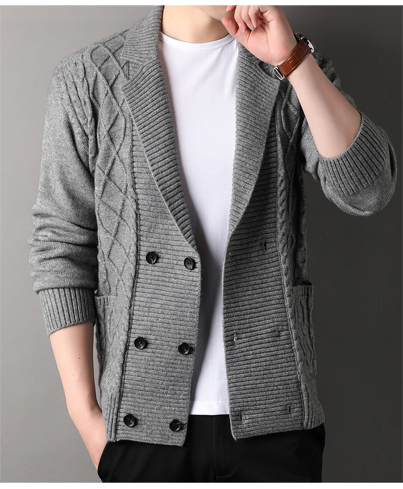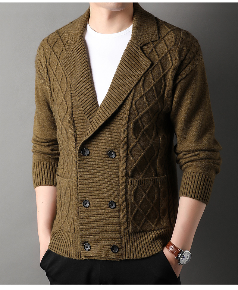 Men's Cardigan British Suit Collar Double-breasted Knitted Sweater