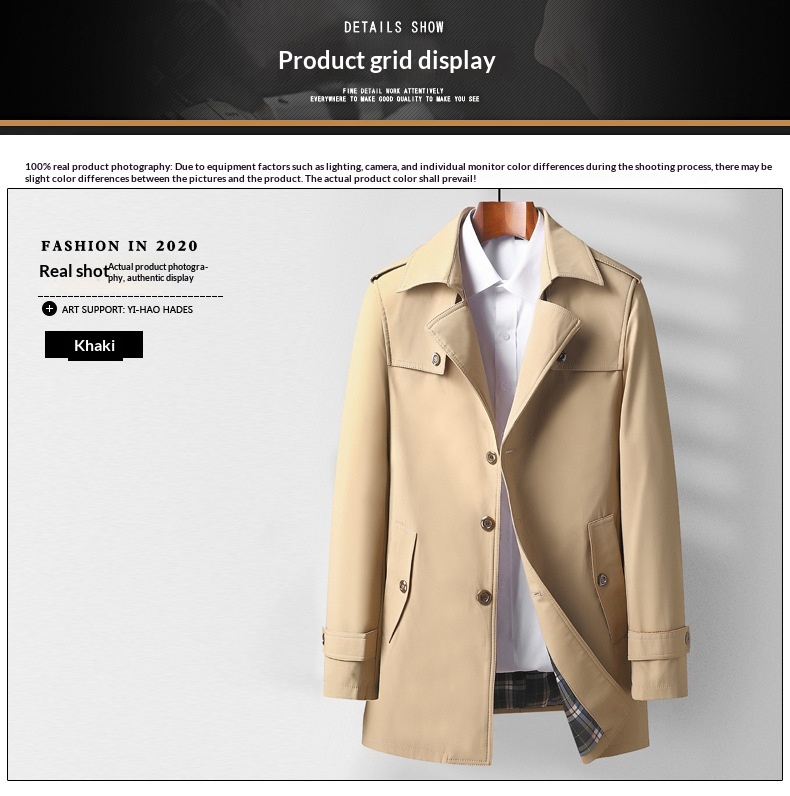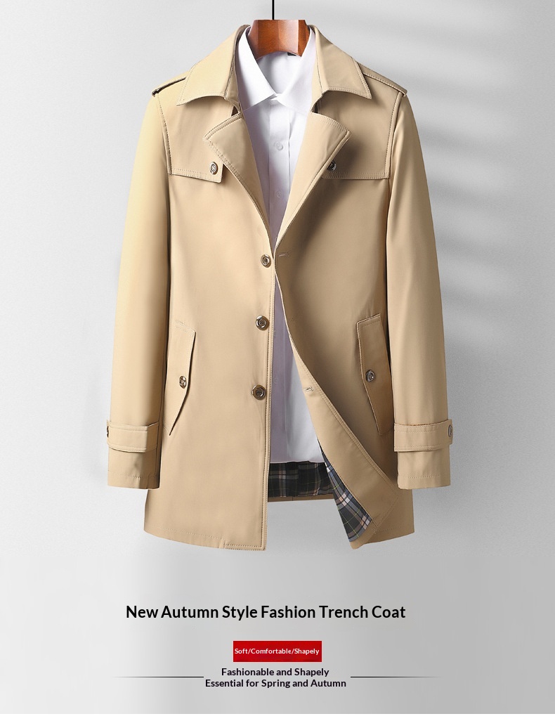 Mid-length Lapel Casual Fashionable Versatile Trench Coat For Young And Middle-aged