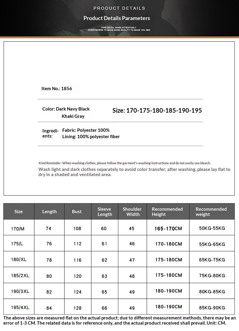 Size: 170/M,175/L,180/XL,185/2XL,190/3XL,195/4XL